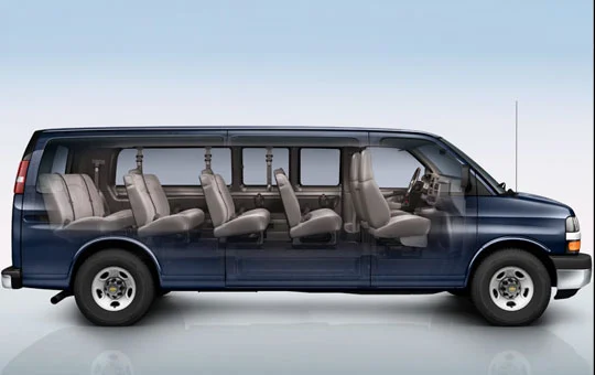 The Premium Van Class accommodates 8 to 14 Passenger features comfortable aisle seating with adjustable headrests, walk-in entrance and luxurious finish. Standard amenities include: LCD monitor with surround sound, zone temperature control, and tinted windows for privacy.